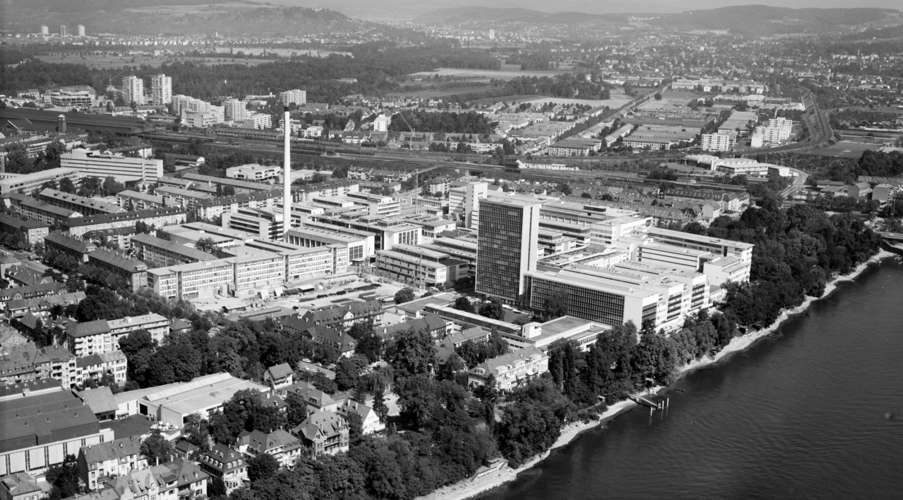 Firmengeländer der F. Hoffmann-La Roche AG im Jahre 1964 © Swissair Photo AG, Basel