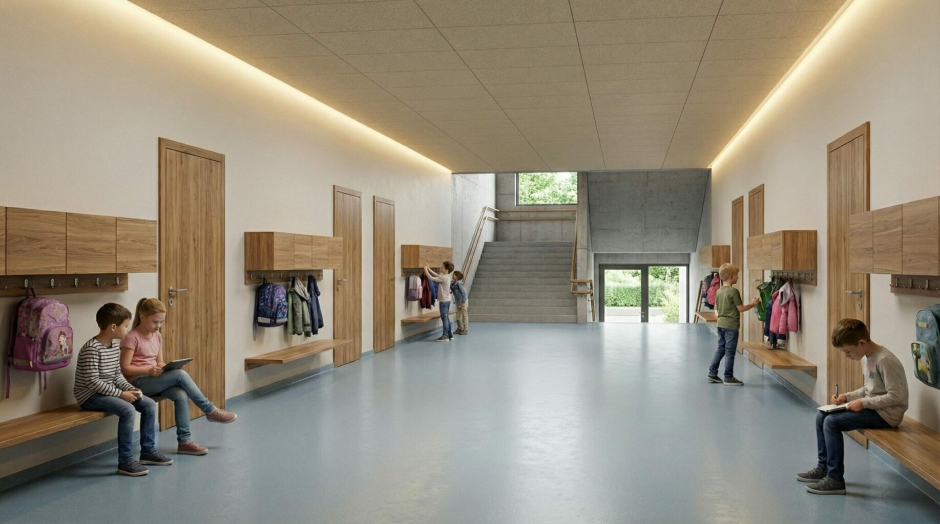 Ohne die visualisierten Kinder in der Umgebung könnte dieses Haus auch in der Gewerbezone stehen. © Arbeitsgruppe „Ratio“