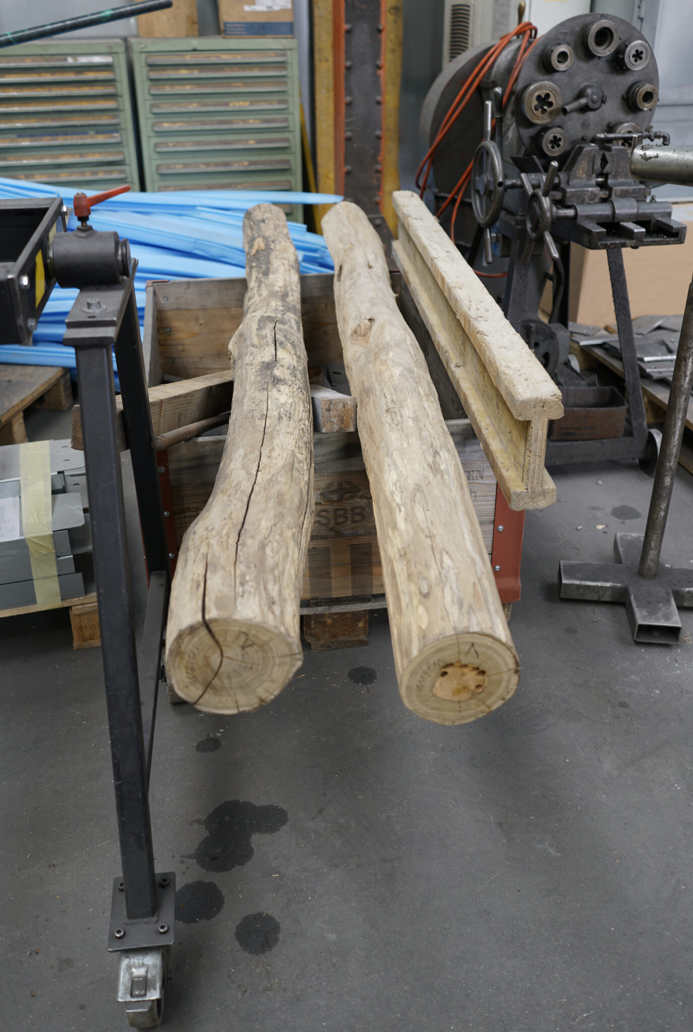 Baumstämme aus dem Hardwald werden zu Säulen ©Laurence Ziegler / Architektur Basel