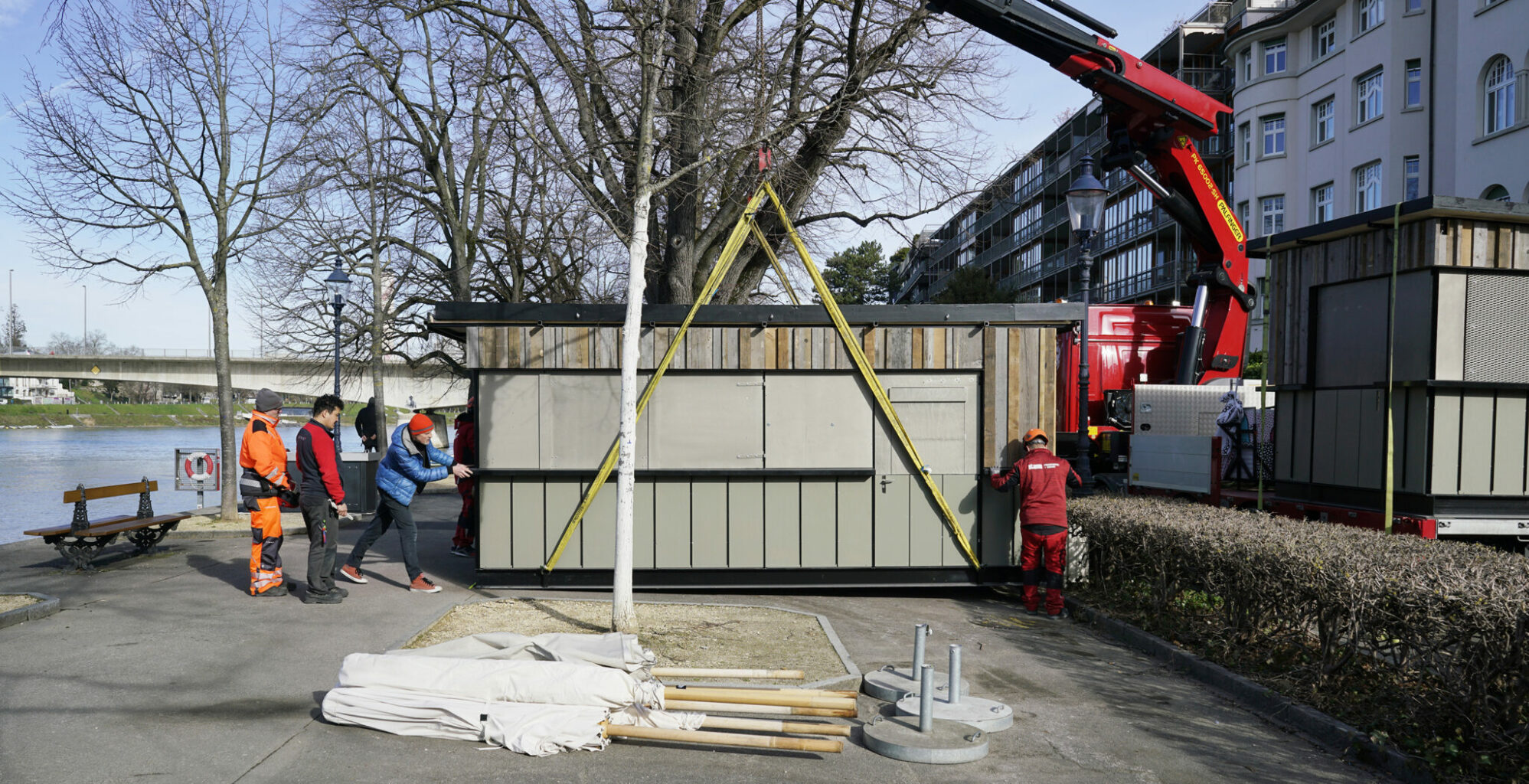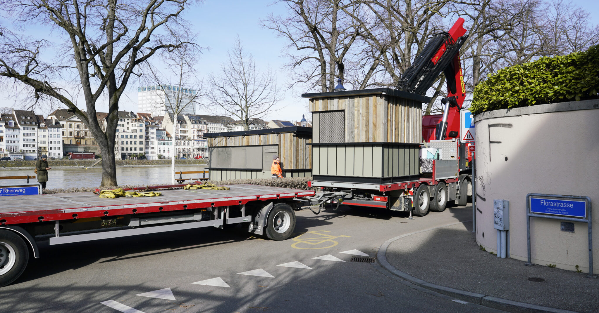 Transport ans Kleinbasler Rheinufer © Laurence Ziegler / Architektur Basel