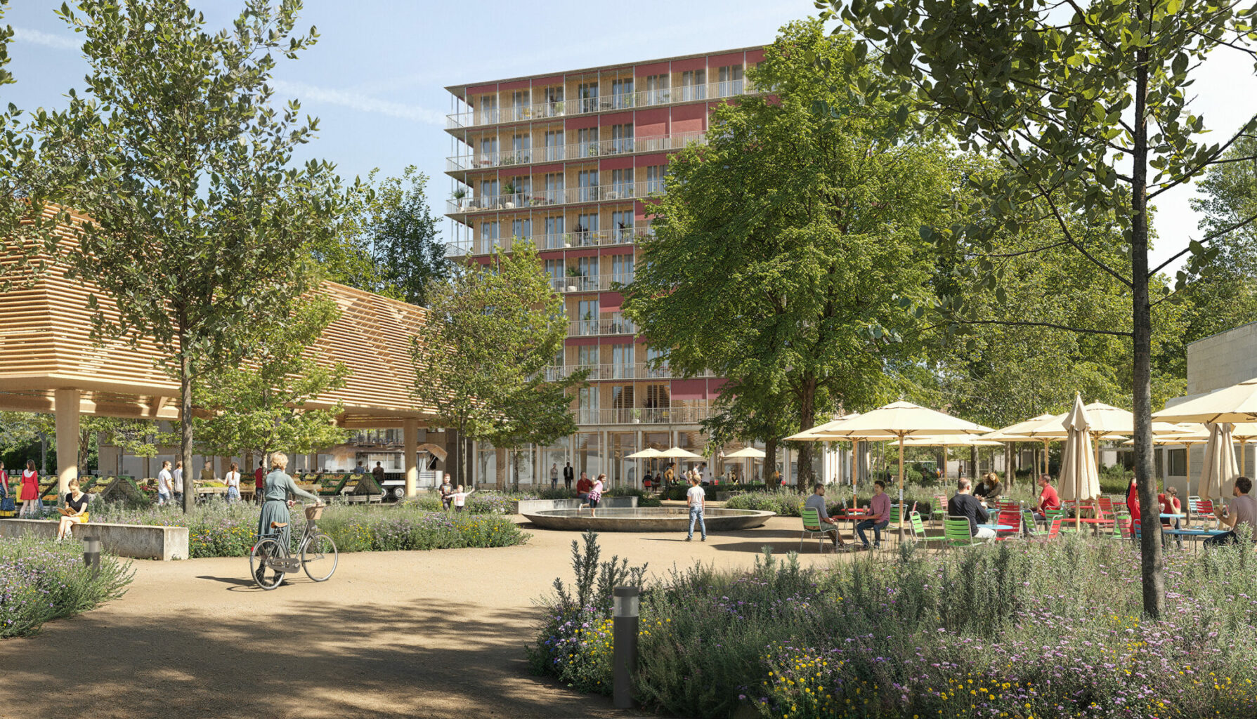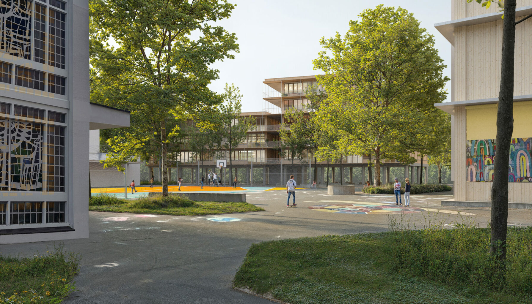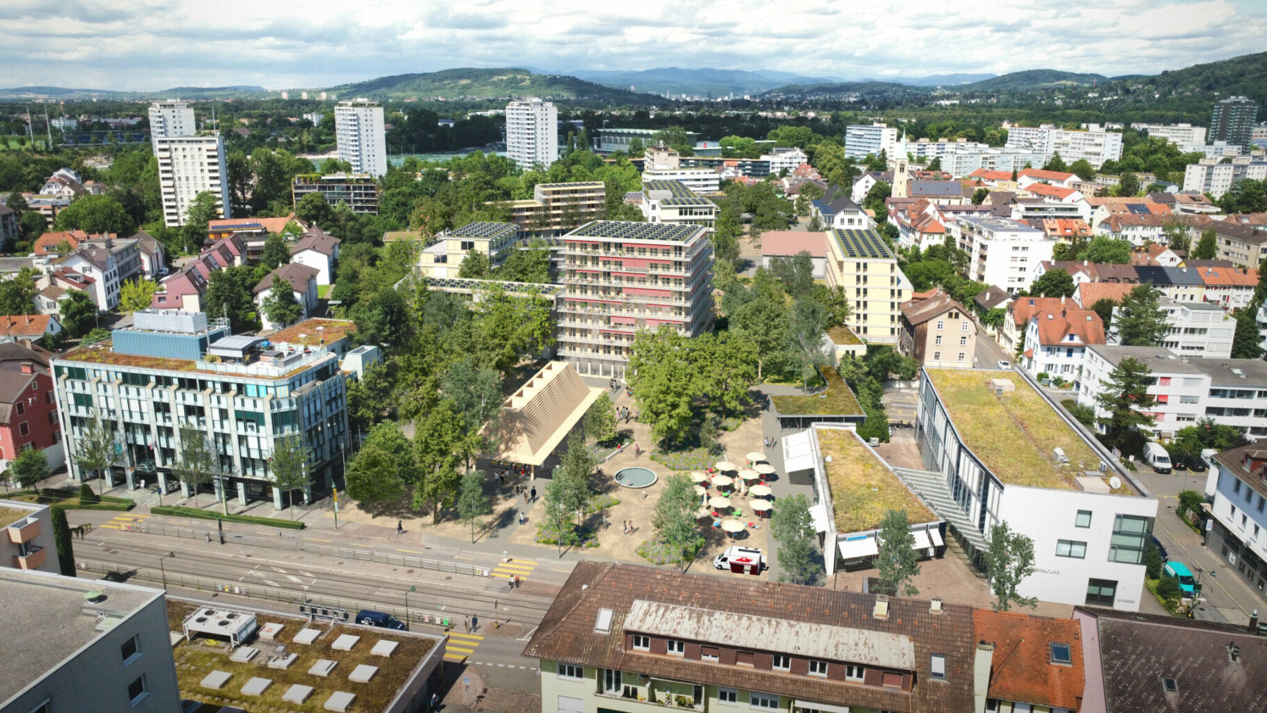 Im Zentrum der neuen Planung steht ein öffentlicher Platz, umgeben von stark begrünten Park- und Spielflächen. Ergänzt wird das Ensemble durch drei Neubauten sowie ein umgenutztes ehemaliges Schulhaus. Insgesamt sollen rund 115 Wohnungen entstehen – vom Wohnatelier über altersgerechte Kleinwohnungen bis zu Familien- und Clusterwohnungen. Parterrenutzungen und quartierbezogene Angebote sollen zusätzlich Leben in die neue Mitte bringen. Claudia Bauersachs, Co-Geschäftsleiterin von wohnen & mehr, sagt: „Wir freuen uns sehr über das Vertrauen des Gemeinderats. Gemeinsam möchten wir ein lebendiges Quartier schaffen, in dem Menschen aller Generationen gut und langfristig bezahlbar wohnen können. Im partnerschaftlich-kooperativen Stil möchten wir ein vielfältig nutzbares neues Zentrum Birsfelden entwickeln.“