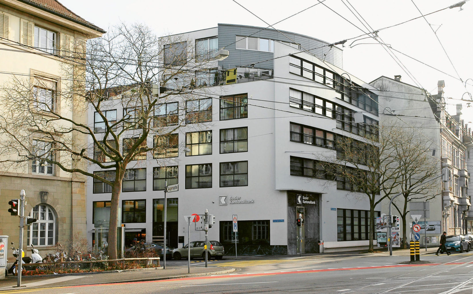 Burgfelderplatz, Wohnhaus mit Bank, Basel, Schweiz, 1982-1985 © Foto: Martin Steinmann, Aarau