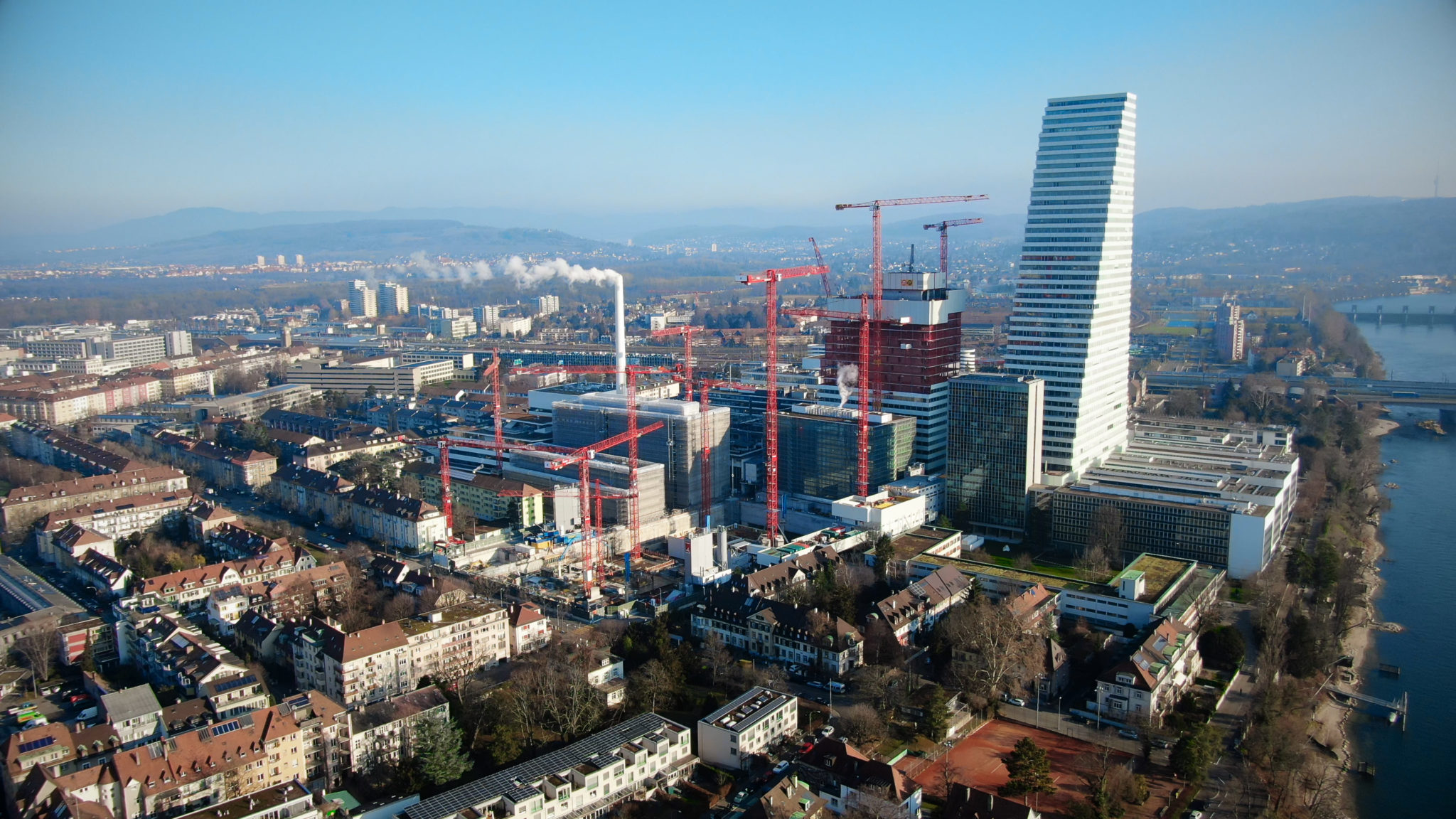 Viele rote Kräne verheissen viel Wachstum © F. Hoffmann-La Roche Ltd