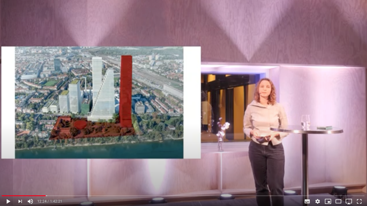 Zum Schluss führte die Diskussion zurück zur verführerischen Verheissung des städtebaulichen Vorschlags von Herzog & de Meuron: Dem grossen, neuen Park am Rhein. Aus dem Publikum wurde via Livechat die Frage gestellt, ob die Roche damit nicht einfach vorsorglich Platz für weitere Türme schaffen wolle. Dies verneinte Erismann: "Es wird kein Bau 4 kommen." Ausserdem wurde gefragt, ob der neue Park denn auch tatsächlich öffentlich zugänglich sei. Hier geriet Erismann in die Defensive. Er führte aus, dass die Vorfahrt zum neuen Empfangspavillon auf jeden Fall öffentlich sei. Der Park hingegen werde "nicht öffentlich sein können." Mit diesem einen Satz wurde der städtebauliche Wurf seiner Versuchung beraubt. Die Argumentation Erismanns, weshalb der Park nicht der Öffentlichkeit zugänglich gemacht werden könne, war eher dürftig: "Wir können die Sicherheit eines öffentliche Parks nicht übernehmen. Wenn Leute am Wochenende unterwegs sind, sich sportlich betätigen und sich dabei verletzen. Das ist nicht denkbar." Falls es tatsächlich daran liegen würde, darf die Roche das Land gerne der Allgemeinheit im Baurecht abtreten. Dann könnte der Kanton – finanziert aus dem Mehrwerttopf – den Park selbst realisieren und unterhalten.