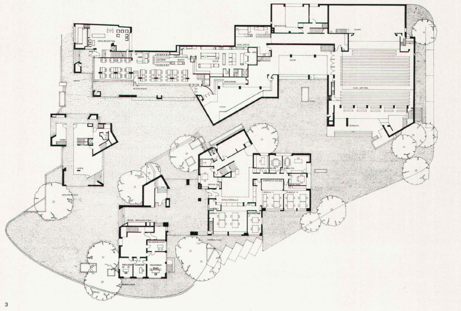 Gemeindezentrum Muttenz, Grundriss Erdgeschoss © werk, bauen + wohnen 002 1971