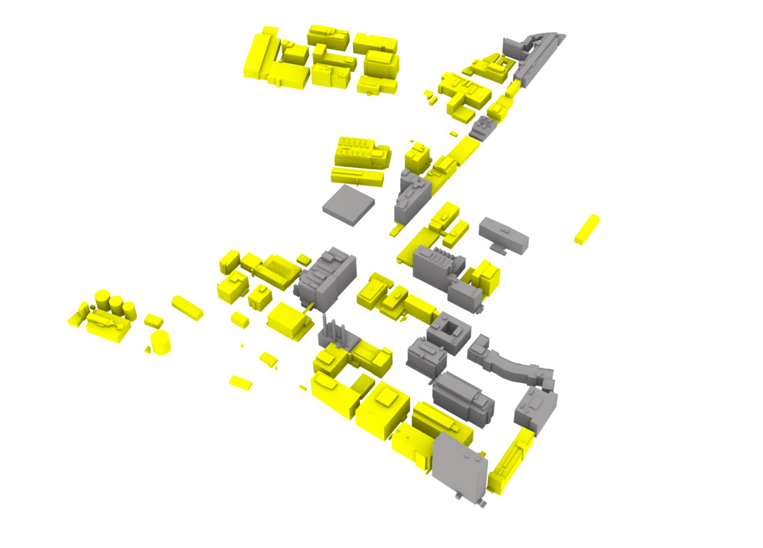 Gelb steht für Abbruch. Eine Mehrheit der Bauten soll abgerissen werden.