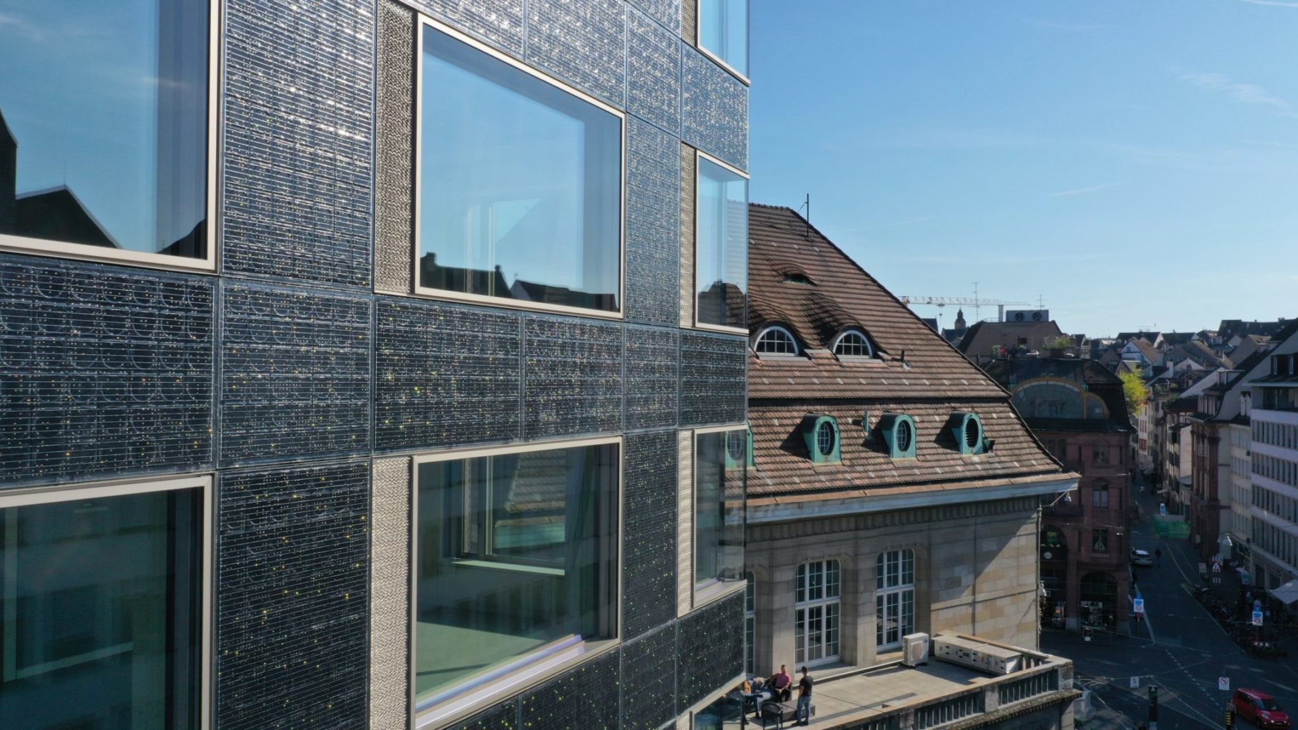 Geheizt wird mit Wärme aus dem Basler Fernwärmenetz. Der Neubau, erstellt in einer Holz-Beton-Bauweise, kombiniert regionales Buchen- und Fichtenholz mit Recyclingbeton. Die Holz-Beton-Konstruktion hat eine gute Wärmespeicherkapazität, was im Sommer die nächtliche Kühlung unterstützt und sich damit positiv auf den Energieverbrauch und das Raumklima auswirkt. Mit der Verwendung von überwiegend regionalen Materialien wurde die graue Energie deutlich gesenkt. Die eingesetzten Photovoltaikmodule wurden eigens für den Neubau entwickelt: "Dank farbiger Punkte und einer strukturierten Oberfläche aus gehärtetem Schmelzglas verändert sich je nach Blickwinkel und Sonneneinstrahlung das Lichtspiel in den Modulen."