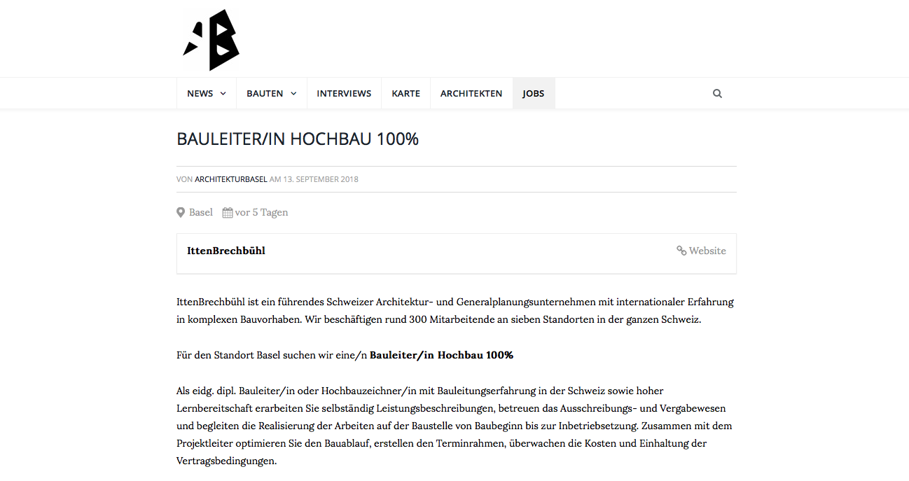 Job gesucht? Architektur Basel ist neu auch eine Stellenbörse