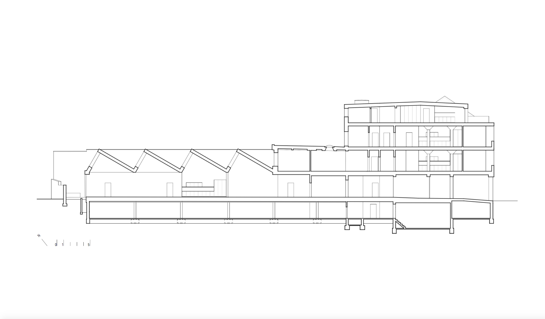 Die effizient-rationelle Gebäudestruktur ist der eine Grund, weshalb der Bestand für eine Transformation zu Wohnraum prädestiniert war. Der andere, triviale Grund ist ökonomischer Natur: Die Ausnutzung des Bestandes liegt weit über den heutigen baugesetzlichen Möglichkeiten. Ein Beispiel: Der Hof ist fast komplett überbaut, wobei heute gemäss Baugesetz mindestens eine Freifläche von 50% beibehalten werden müsste.