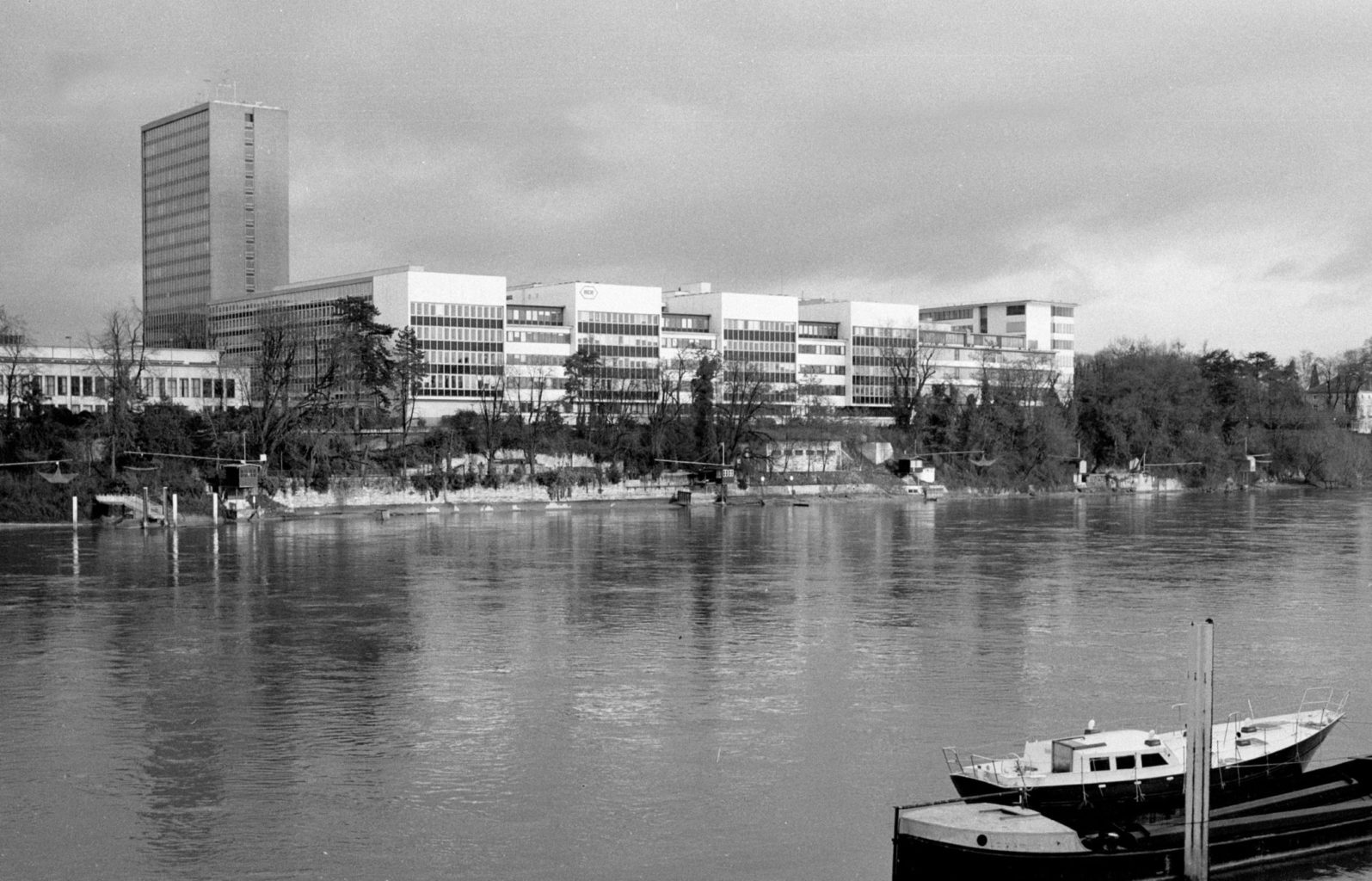 Rheinfassade der Roche anfangs 1980 © Bärtschi, Hans-Peter
