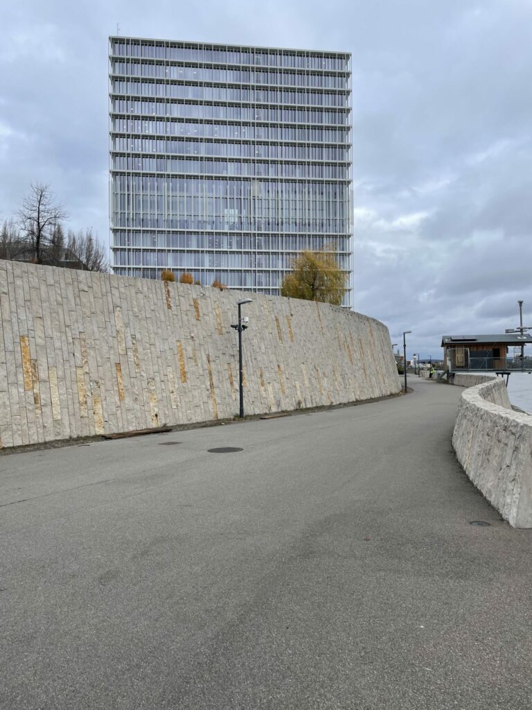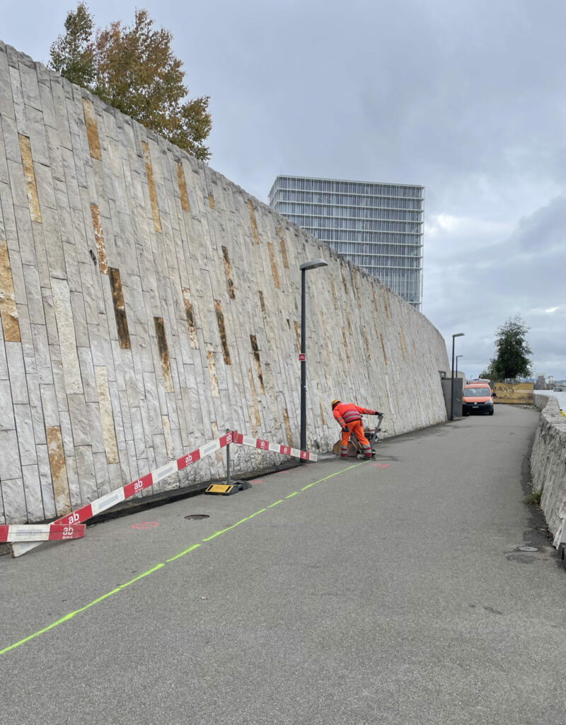 Die Arbeiten im Hafenareal dauerten über 5 Jahre. Viel Material wurde angeliefert, damit wurde der alte Hafen überdeckt und das Grundstück der Novartis erweitert. Nach über sechsjähriger Planung und zwei Jahren Bauzeit konnte die Promenade 2016 eröffnet werden. Während diesen ganzen Jahren hätte sich die Vegetation, in den dafür vorgesehen Ritzen zwischen den Steinen, ansiedeln können. Doch ist bis heute ausser ein paar verkümmerter Bäume nichts Grünes entlang der Promenade zu sehen.