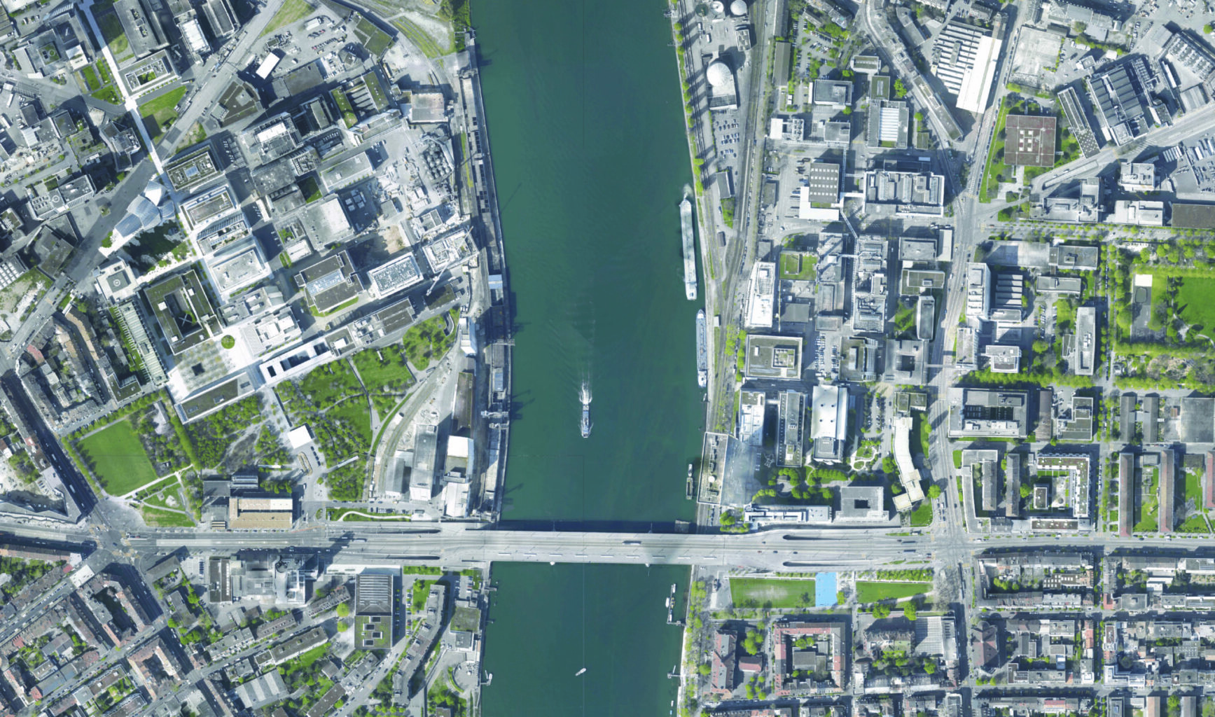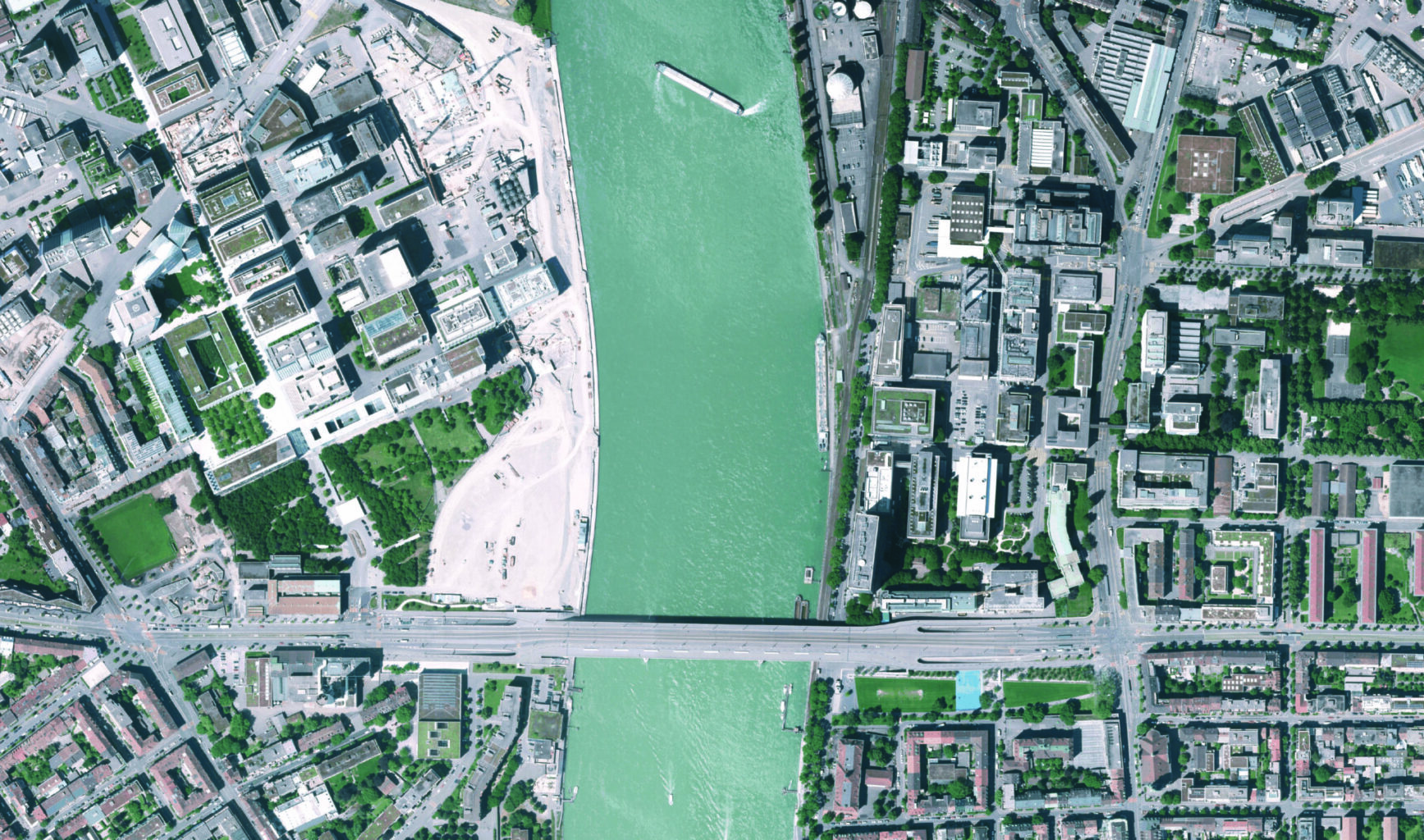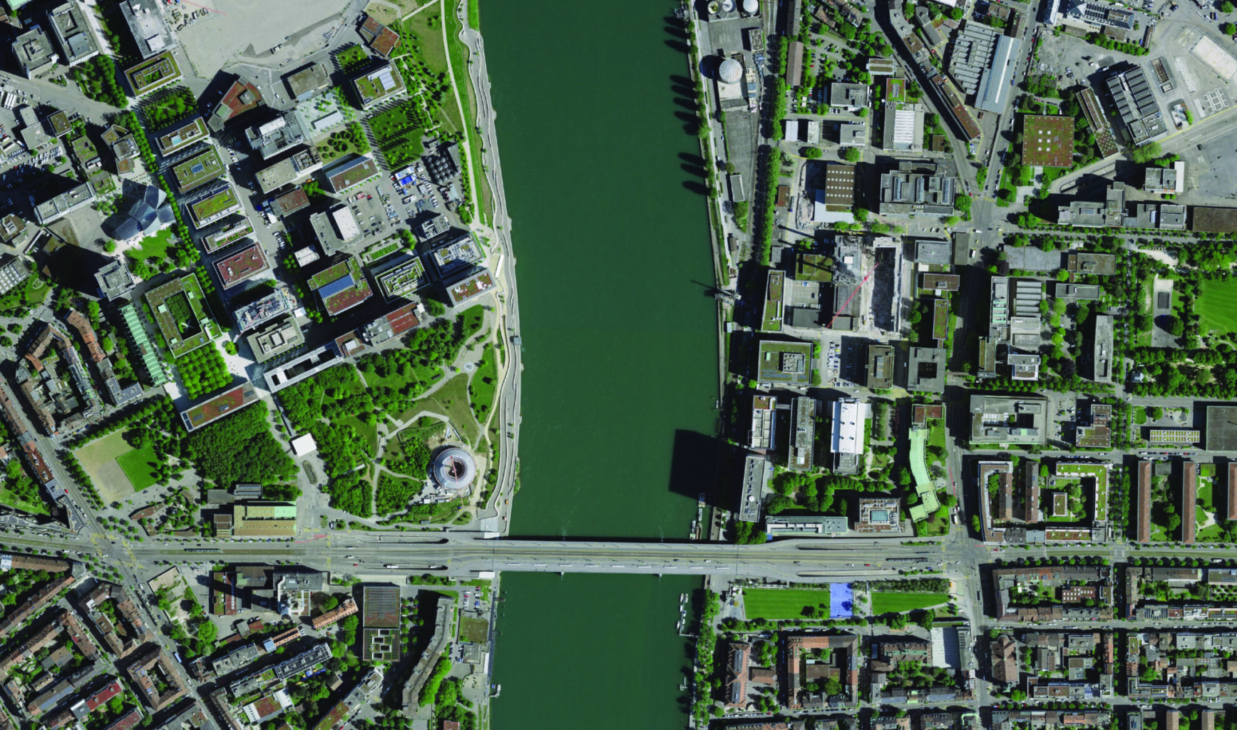 Die geschwungene Linie vom Bauwerk ist im Luftbild gut erkennbar. (2021) © GeoPortal BS