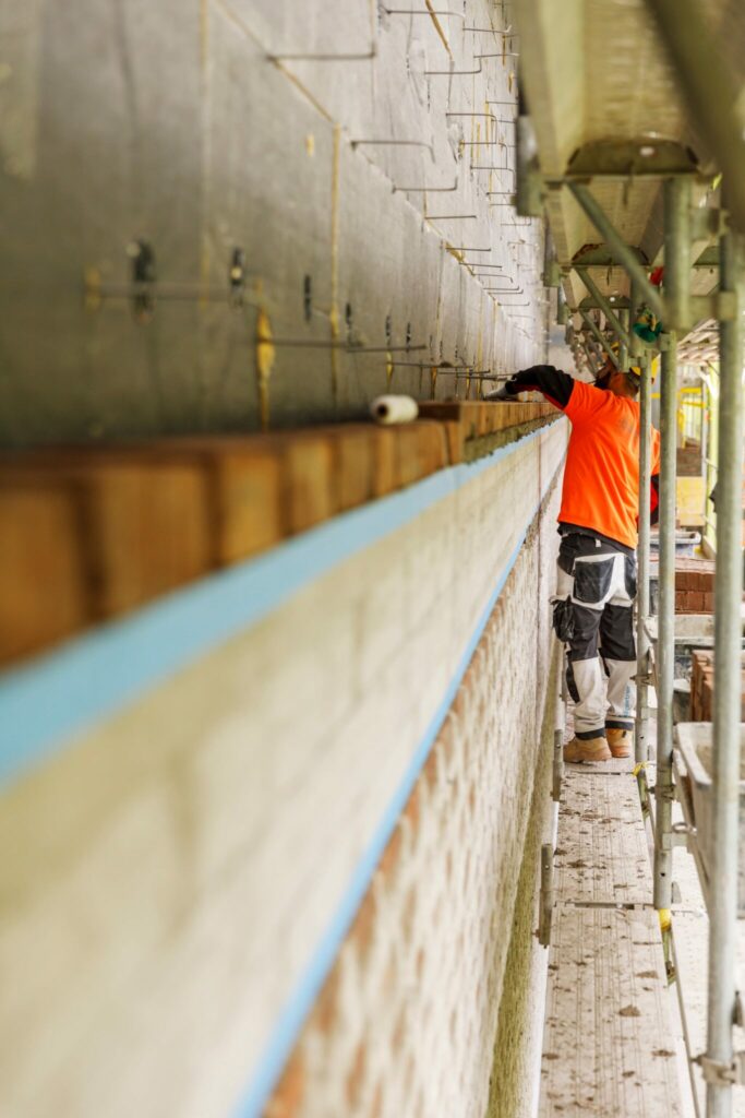 Backsteinfassade wird gemauert, Foto: Derek Li Wan Po, Oktober 2024