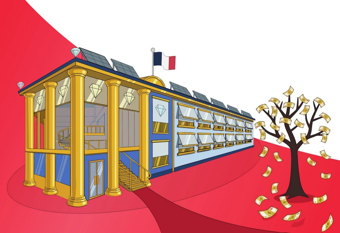 Das Schulhaus als vergoldeter Tempel... Polemik der Gegner © luxusschulbau-nein.ch
