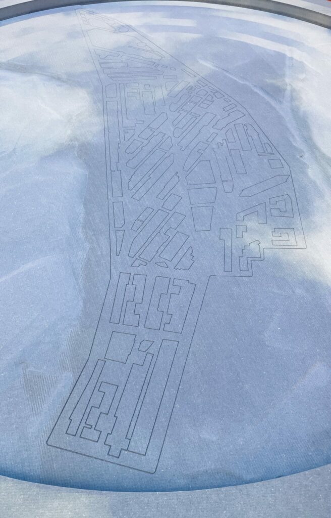 Auch ein Stück der zukünftigen Basler Stadtentwicklung ist in der Ausstellung anzutreffen: Ausgestellt ist ein CNC-gefrästes Modell des Dreispitz-Areals. Hier wird das Konzept für die künftige Gestaltung des Areals über eine Lichtinstallation auf futuristische Art und Weise projiziert.