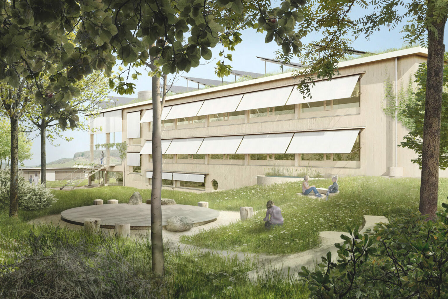 Ohne die visualisierten Kinder in der Umgebung könnte dieses Haus auch in der Gewerbezone stehen. © Arbeitsgruppe „Ratio“