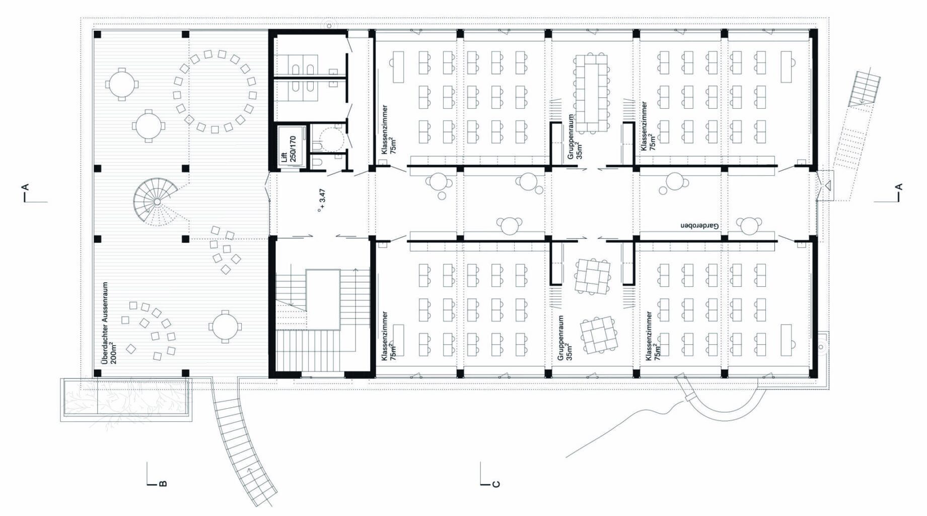 Aufgabenstellung, Jurybericht und Wettbewerbspläne des Siegerprojektes:https://competitions.espazium.ch/de/wettbewerbe/decisi/primarschulhaus-hofmatt-gelterkinden