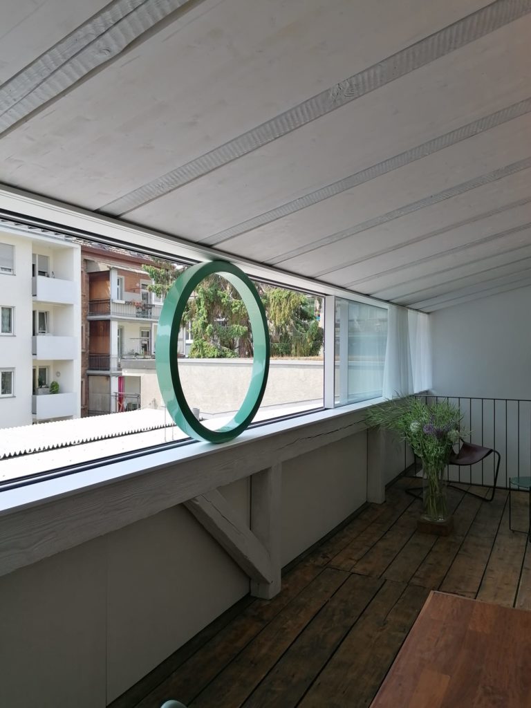 Hinterhof part II: Vergangenes Jahr haben Piertzovanis Toews das Hofhaus an der Matthäusstrasse aufgestockt, um zusätzlichen Wohnraum zu schaffen. Der markante, grüne Kreis, der als Stütze fungiert, ist dabei ein besonderes Statement, "ein Plädoyer für das Gestalten jenseits von Ratio und aufklärerischem Nützlichkeitsstreben", wie die Architekten es bezeichnen. Form first.