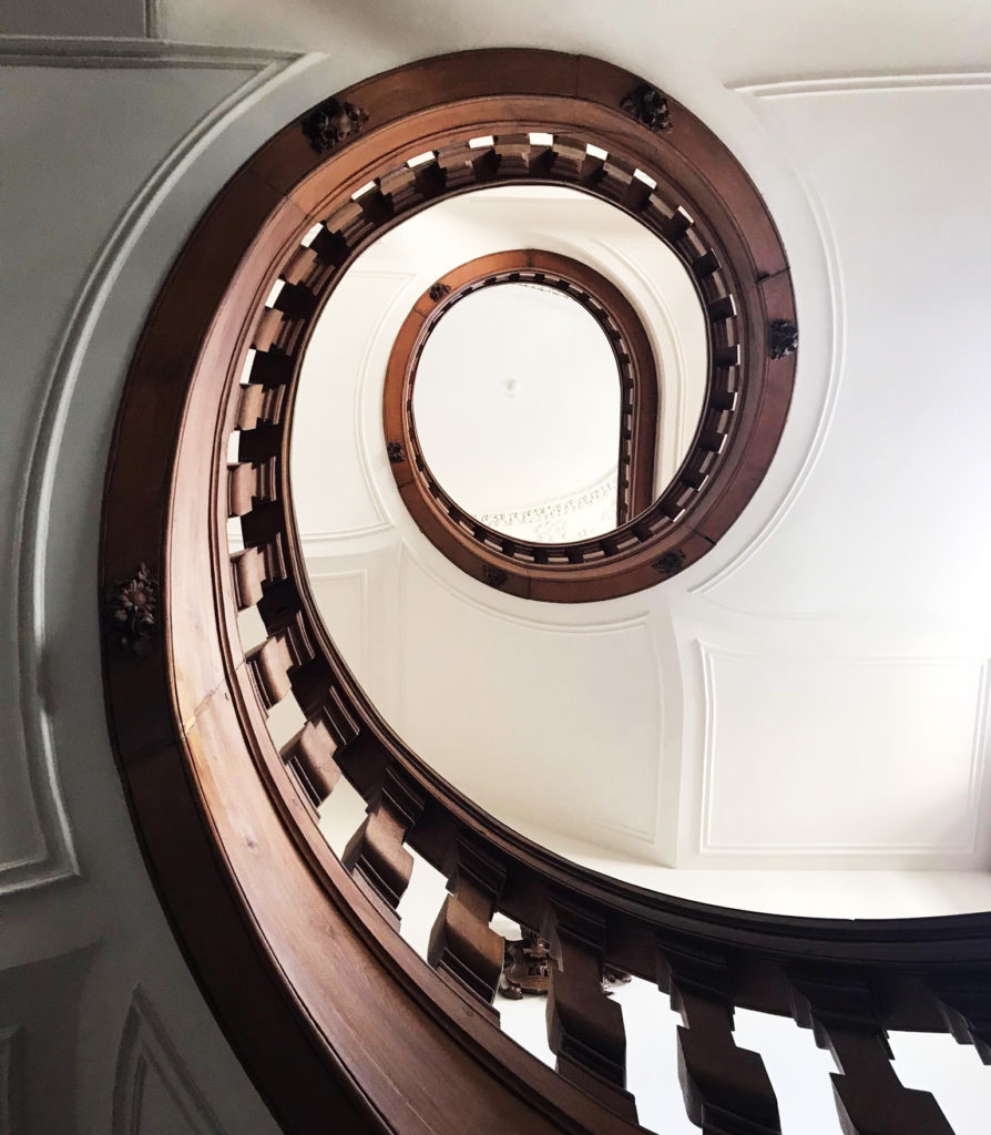 Was für ein Treppenauge! Die elegant geschwungenen Linien lassen das Auge fröhlich mittanzen. Bei aller Liebe für die Moderne sind es solche Momente des architektonischen Kontrasts, die das Open House so faszinierend machen.