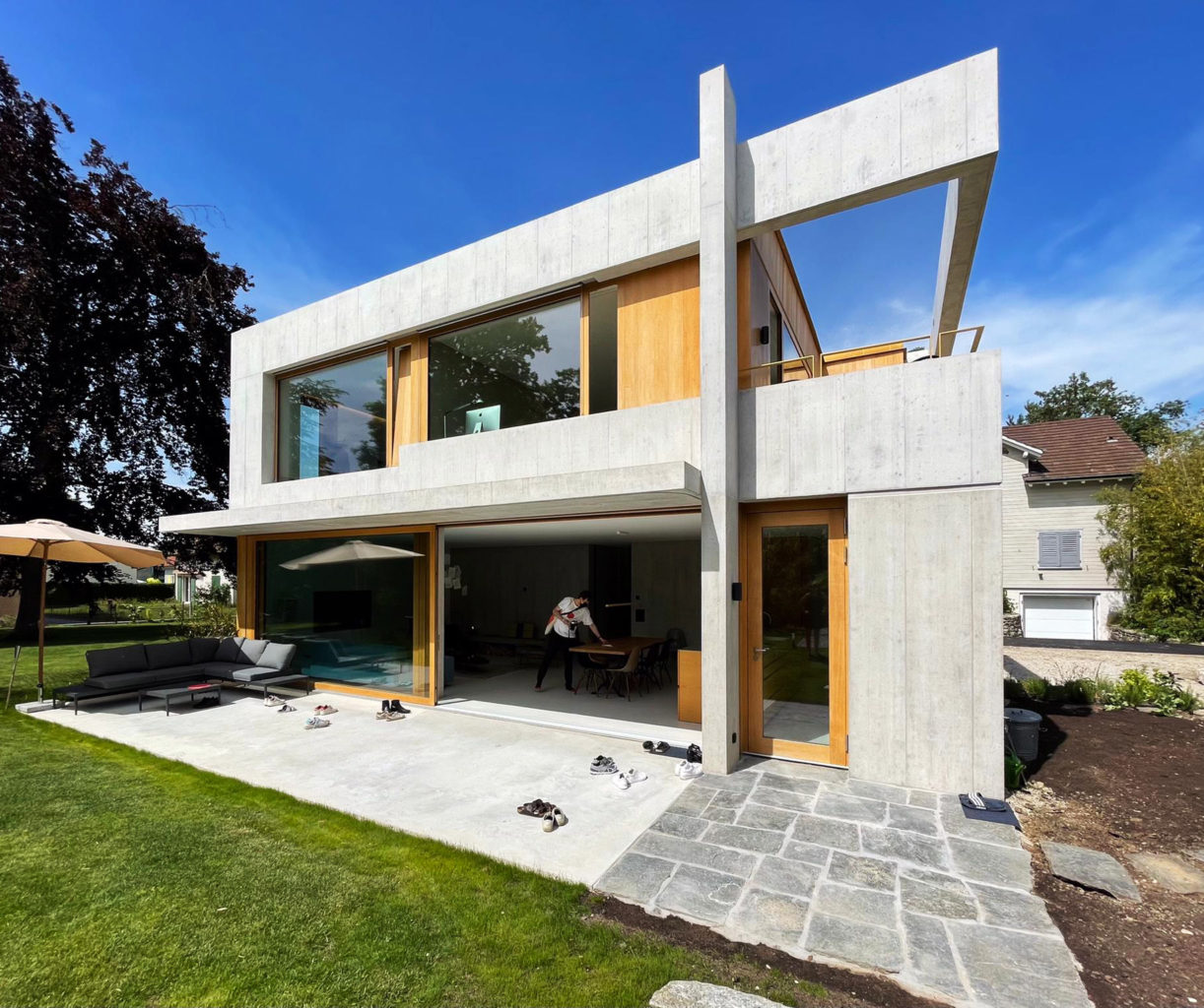 Etwas weniger experimentell geht es an der Hinterzweienstrasse in Muttenz zu und her. Weberbuess Architekten haben hier 2020 ein Haus in Beton realisiert, das insbesondere durch seine kraftvolle, fast skulpturale Erscheinung und die hohe Ausführungsqualität überzeugt.
