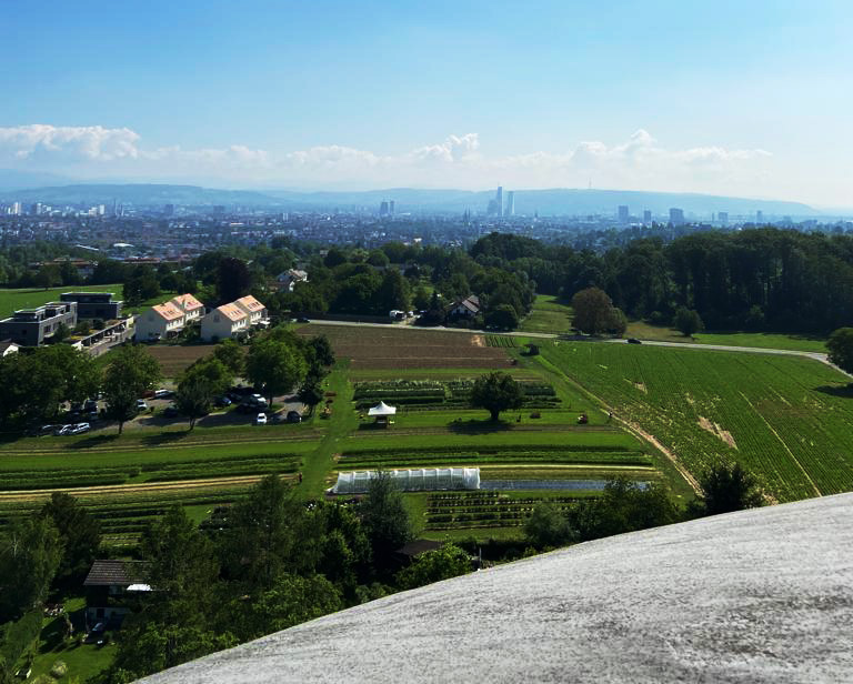 Von der Plattform aus schweift der Blick nach Basel. Die zahlreichen Hochhäuser zeugen vom Bauboom am Rheinknie. Wie facettenreich die hiesige Baukultur ist, bewies das Open House Basel 2021 erneut. Unser Blumenstrauss geht an alle Volunteers, Organisatoren, Gönner und Partner, die die Begeisterung für Architektur einem breiten Publikum erlebbar machen. Danggscheen.