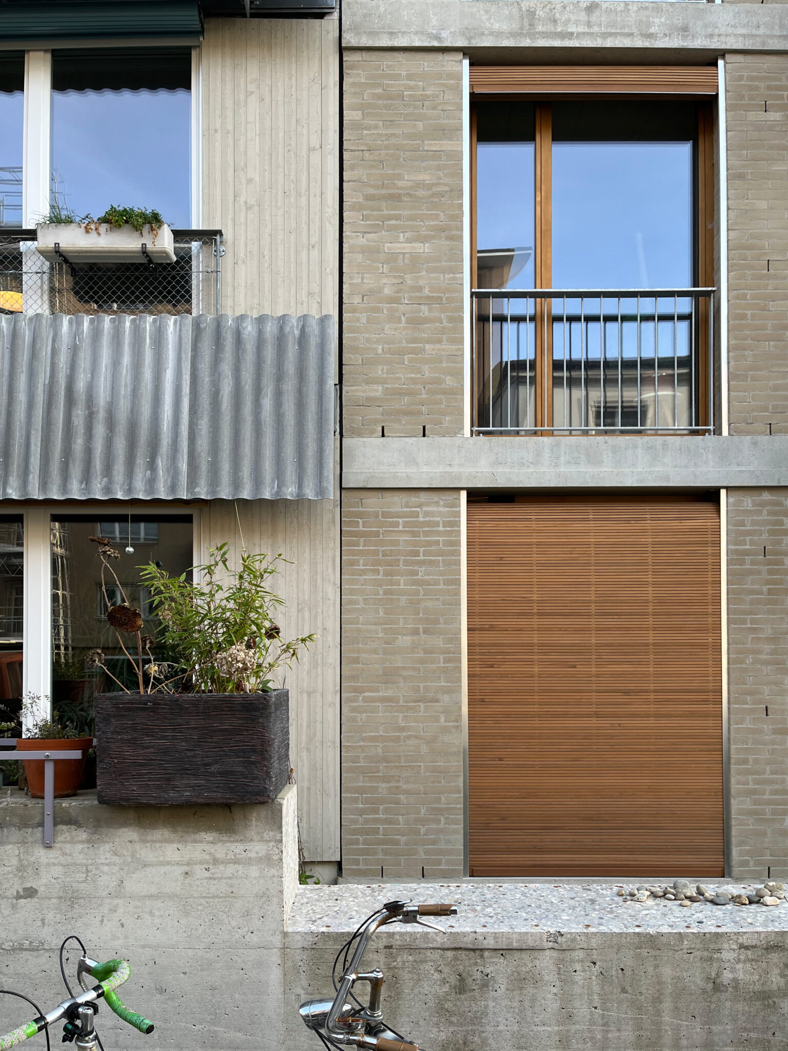 Von der Fuge zwischen Zwei Häuser – hier zeigt sich das farbliche Miteinander ganz harmonisch © Architektur Basel