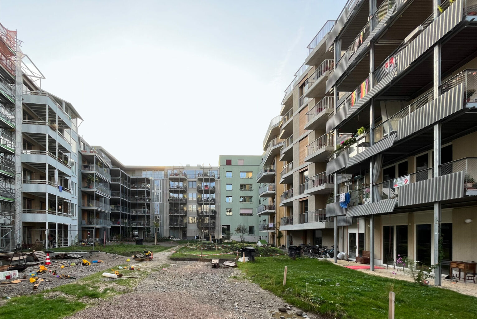 Jedem sein Material und jedem sein Gärtli im Innern des Blockrandes © Architektur Basel