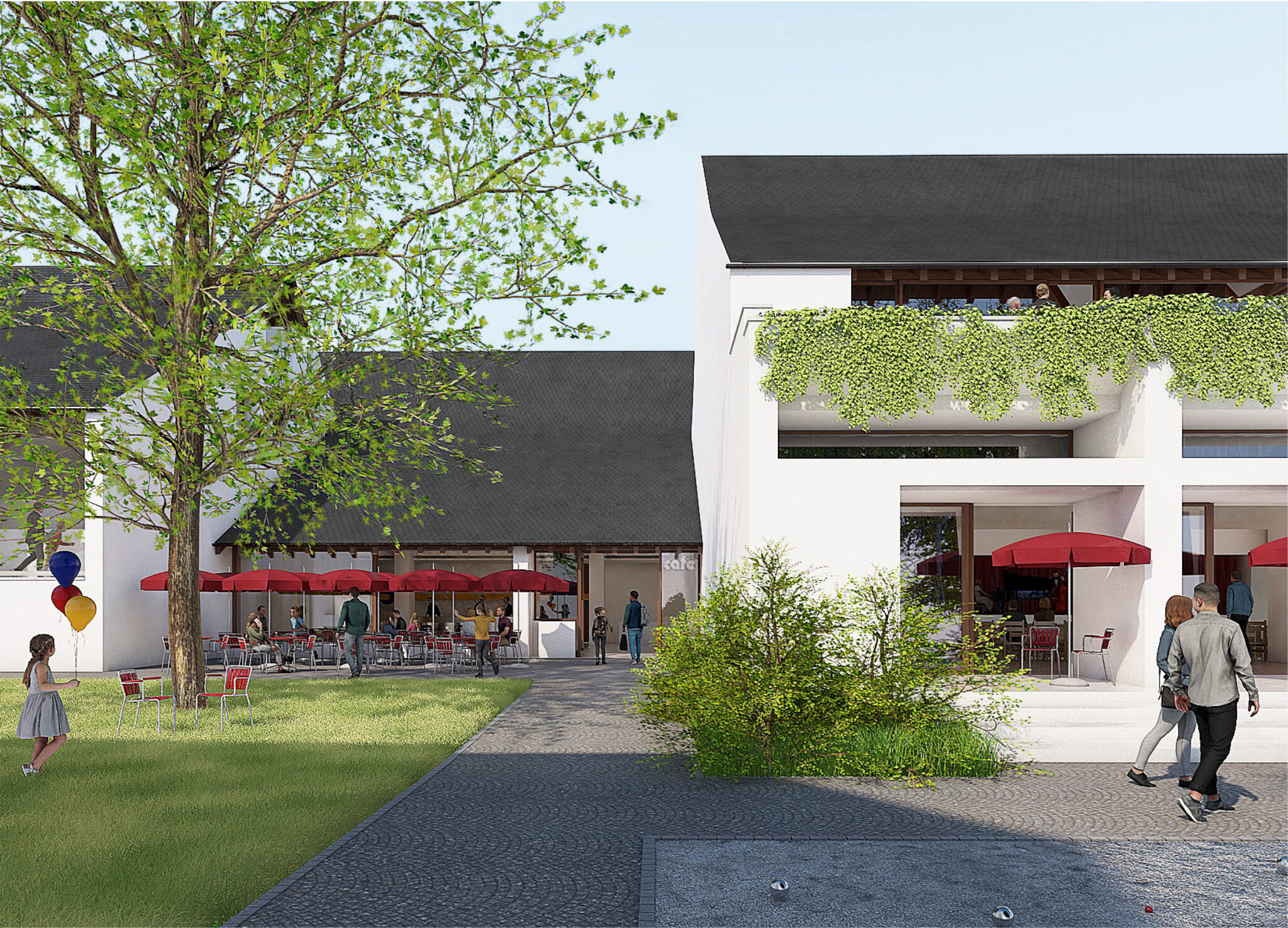 Baumbestandene Terrasse am Café © Harry Gugger Studio
