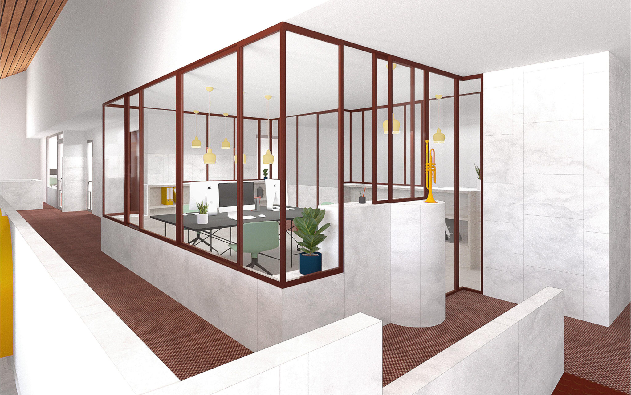 Einbau der Rezeption für die Musikschule im 1. Obergeschoss © Buol & Zünd Architekten