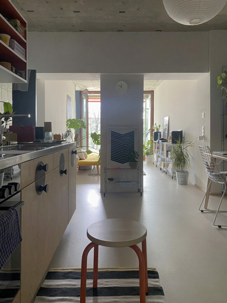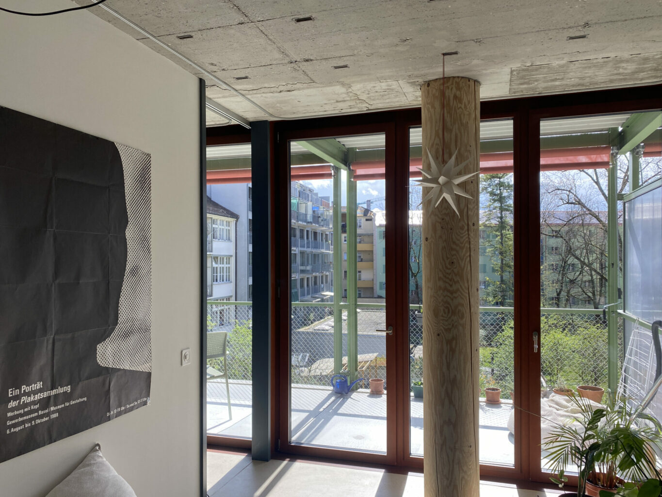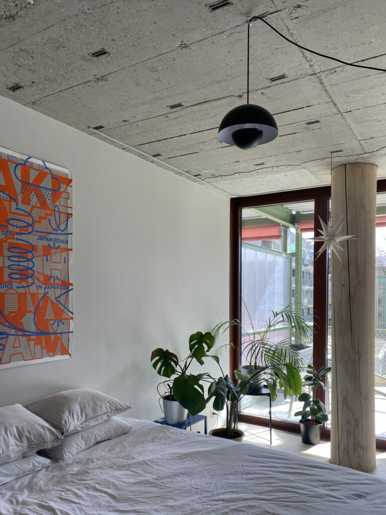 im ersten Beitrag haben wir erörtert, weshalb ,ein umgebautes Haus wertvoller ist als ein Neubau’. ,Weil es die Anpassungsfähigkeit schon bewiesen hat’ und ein Umbau eine grössere kreative Energie freisetzen kann, als dies ein Neubau vermag. Auch Viktoria findet das Haus super. Vor allem, weil der Bestand und die Umbaumassnahmen aufgrund der roh belassenen Oberflächen allerorts ersichtlich sind und den ursprünglichen Charakter des Hauses weiterentwickeln, statt ihn zu überformen. Die drei Untergeschosse und die Struktur aus Stützen und Decken blieben bis zum 3. Obergeschoss bestehen. Die allseits bekannten Pilzstützen sind das Gestaltungshighlight des Gebäudes, auch wenn diese in den nicht durchgesteckten und trotzdem sehr tiefen Wohnungen sehr viel Licht wegnehmen, weshalb die Küchen kaum ausreichend natürlich belichtet scheinen.