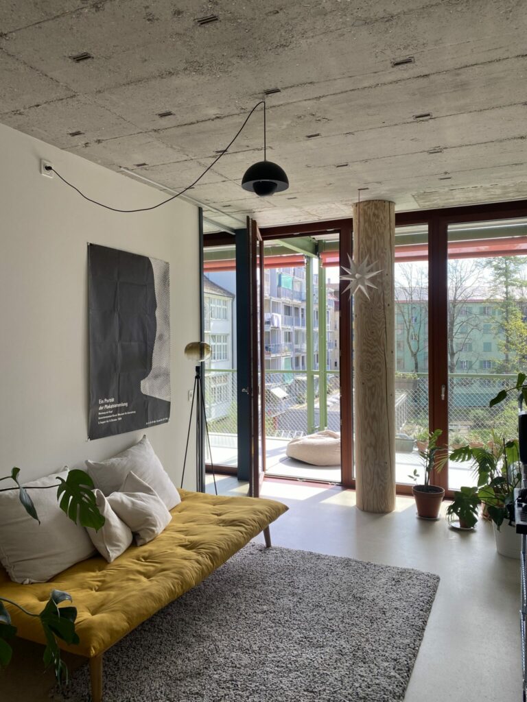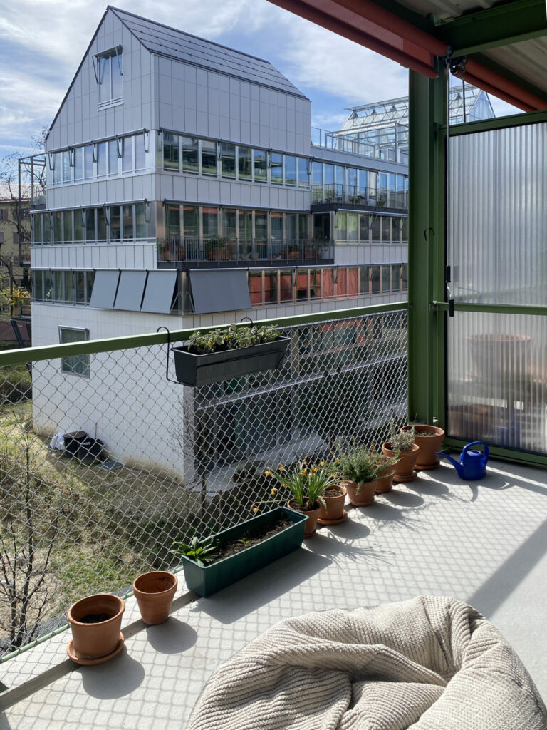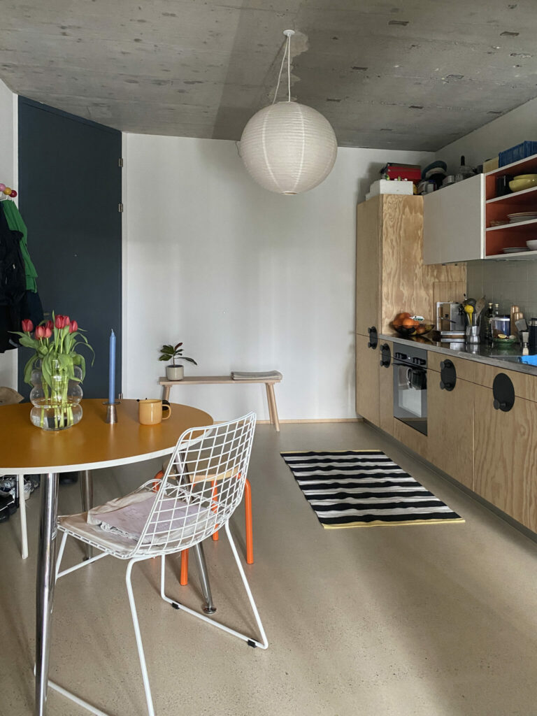 Womit wir beim nächsten Thema wären – der Durchmischung. Als wir Viktoria fragen, ob sie glaubt der Aufwand bei der Wohnungsvergabe hätte sich gelohnt, zögert sie und sagt, sie könnte sich viel mehr Durchmischung vorstellen. Trotz der guten Mischung unterschiedlicher Wohnungsgrössen gibt es mehr grosse als kleine Wohnungen. Durch die Belegungsvorgabe der Wohnungen (Zimmerangebot minus 1 = Mieterzahl), setzt die Zimmeranzahl von mehr als der Hälfte der Wohnungen Kinder voraus. Oder alternative Wohnformen. Bis auf eine Wohngemeinschaft, gibt es Viktoraia's Wissens nach allerdings keine. Nun ist diese Rechnung nur grob überschlagen, deckt sich aber definitiv mit den Empfindungen anderer Bewohnender, wie wir auch im zweiten Einblick sehen werden. Viele finden das Haus, und das ganze Quartier, bisher sehr homogen und erleben wenig Durchmischung.